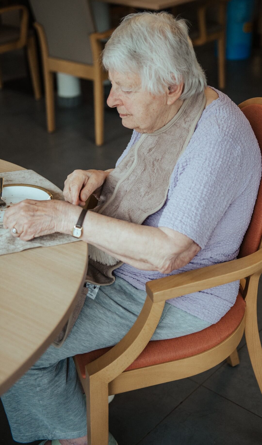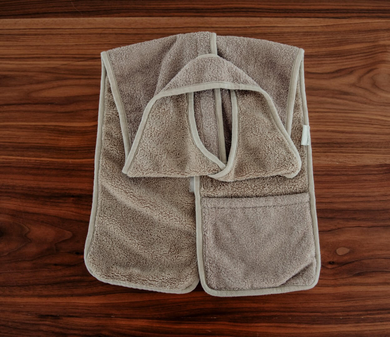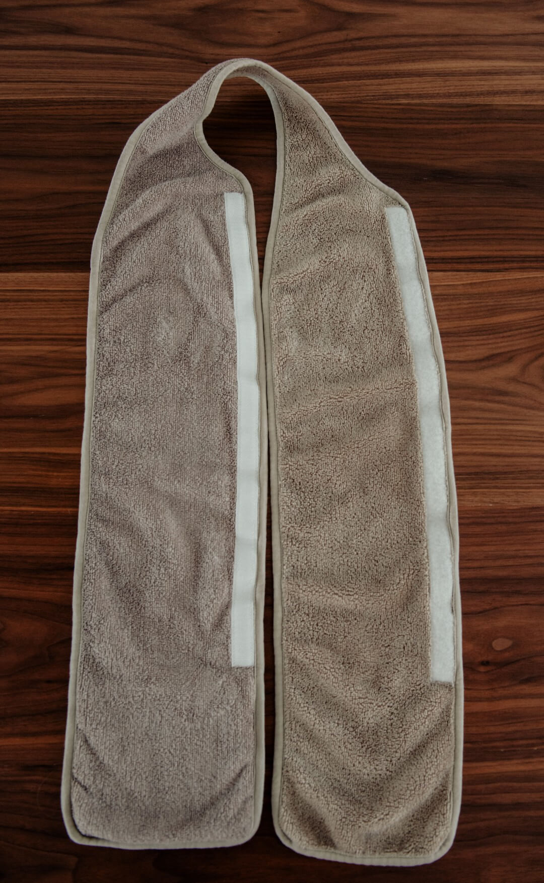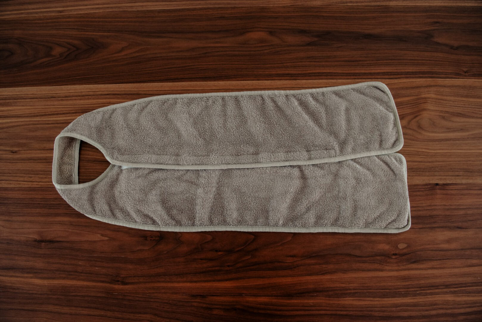 Going outside, dining out, and spending time with family and friends without worrying whether your coordination is on vacation that day. Giving yourself, your family member, or friend a sense of self-worth without having to wear a bib but still having control. That’s why Petou developed the ‘Elégant’ clothing protector in absorbent and luxurious, subtle fabric with a velcro closure. The protector can easily be placed around the neck for complete autonomy.