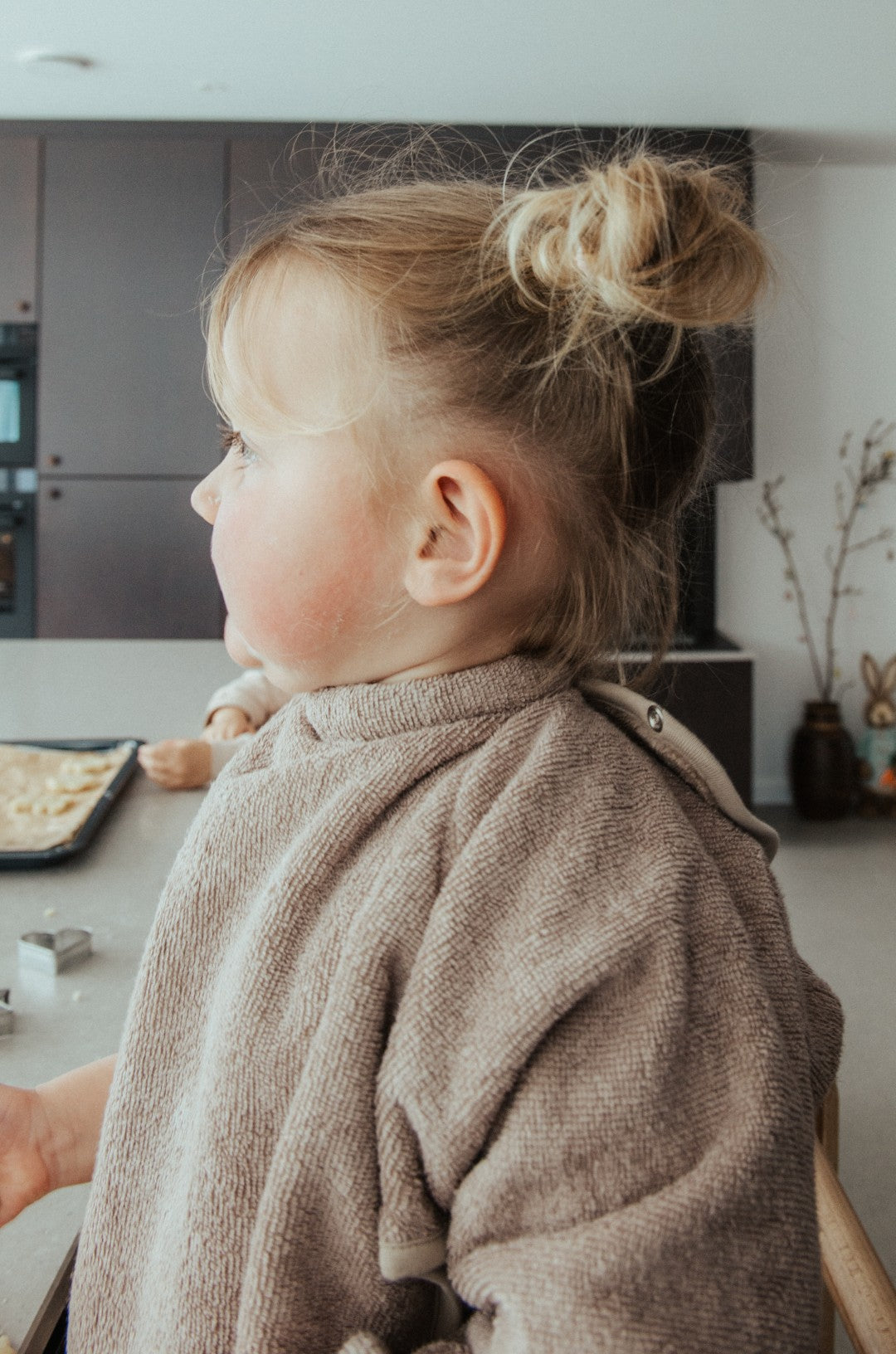 Being caught up in discovering moments and not having to constantly interrupt your child with a cloth is what we wish for every parent. That’s why Petou developed the extra-large, ultra-soft, and absorbent ‘Grand’ bib with long, wide sleeves and an extra-long bottom.This gives your little one full freedom of movement, and you can put the bib over extra thick clothing (even over winter coats) to prevent stains at any time and in any situation.